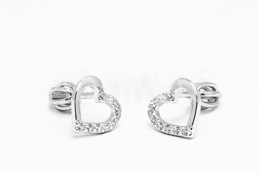 Balónikové náušnice strieborné so zirkónmi- srdce