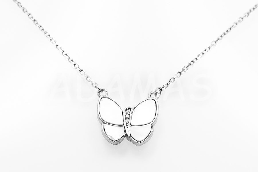 Dámska retiazka strieborná s príveskom – motýľ s perleťovým emailom