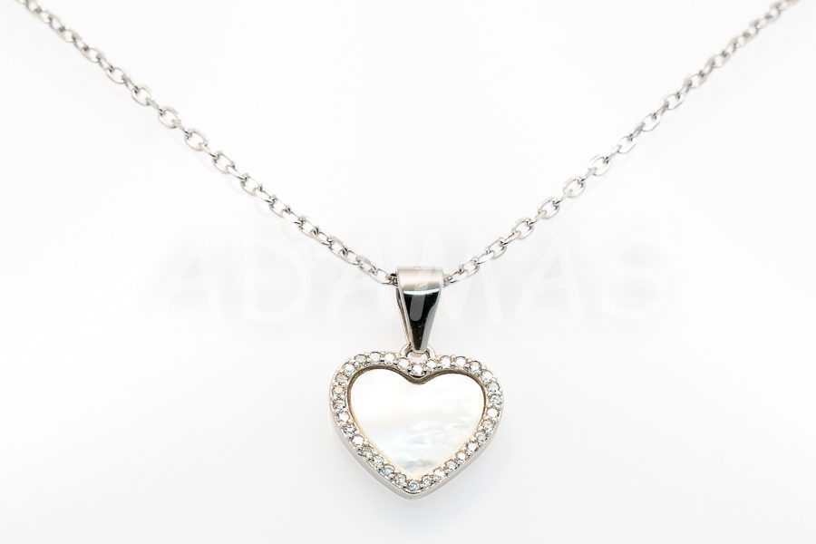 Dámska retiazka strieborná s príveskom – srdce so zirkónmi a perleťovým emailom