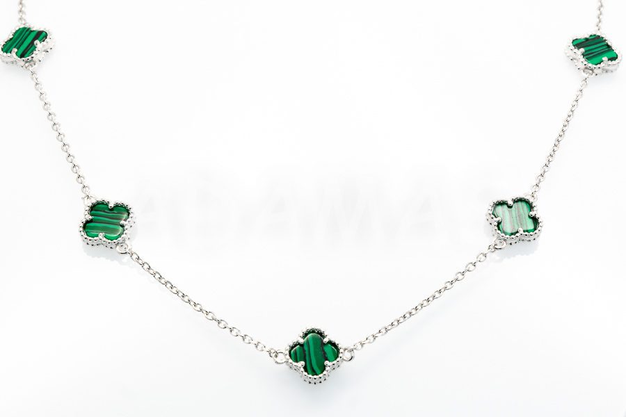 Dámska retiazka strieborná s príveskami – kvety so zeleným emailom