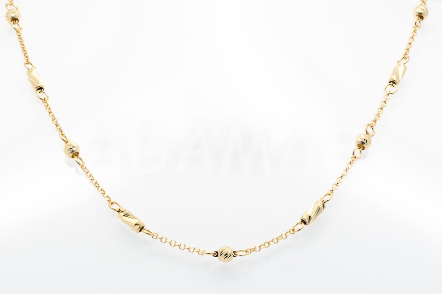 Dámska retiazka zlatá s príveskami – guľkami a valčekmi