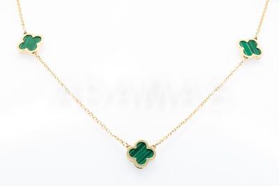 Dámska retiazka zlatá s príveskami – kvety so zeleným emailom