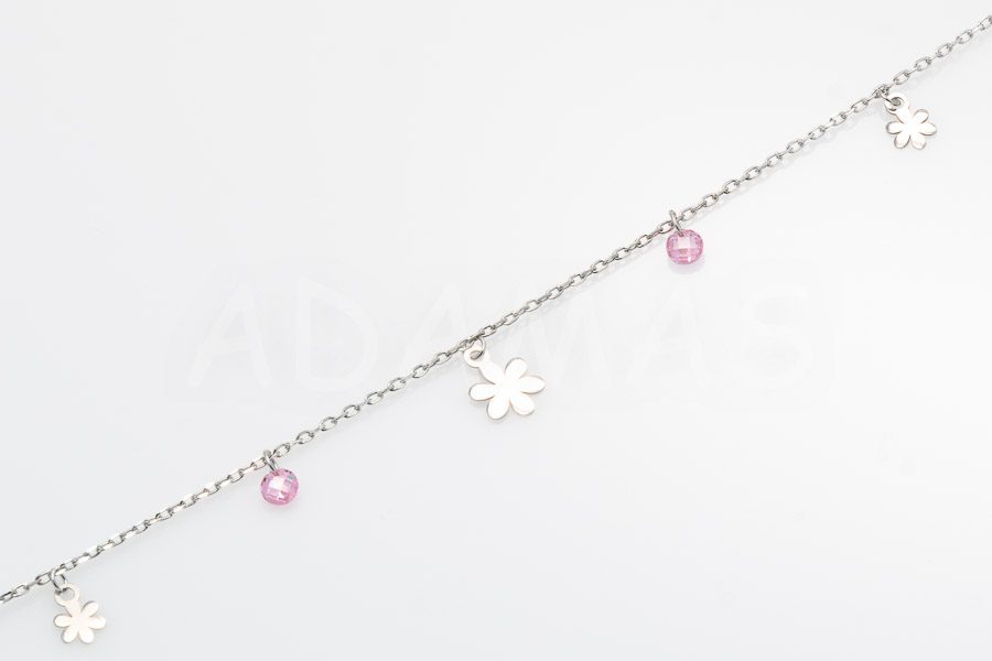 Dámsky náramok strieborný s ružovými zirkónmi a kvetmi
