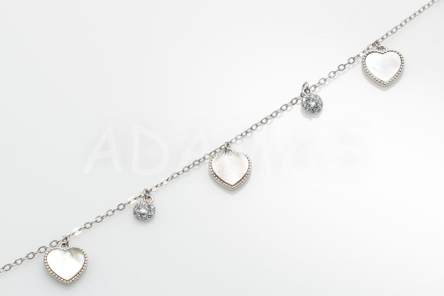 Dámsky náramok strieborný s umelou perleťou a zirkónmi – srdcia