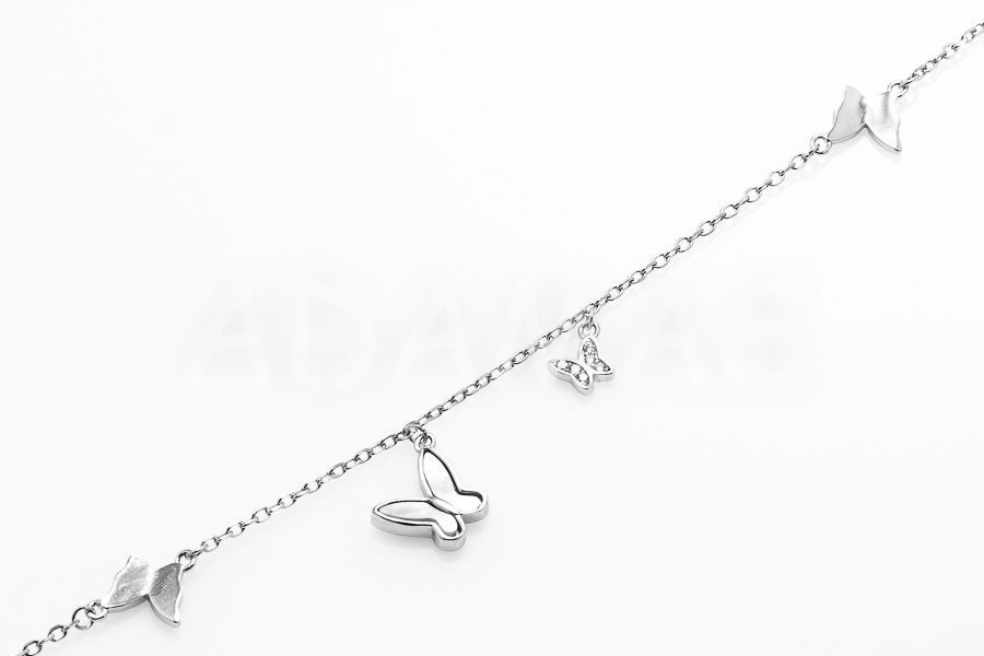Dámsky náramok strieborný s emailom a zirkónmi -motýľ