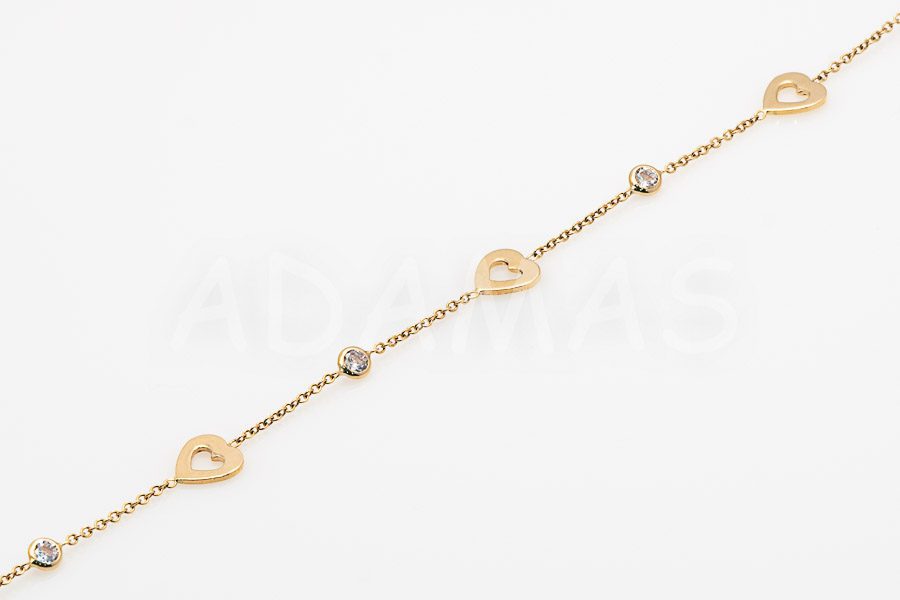 Dámsky náramok zlatý so zirkónmi- srdcia a zirkóny