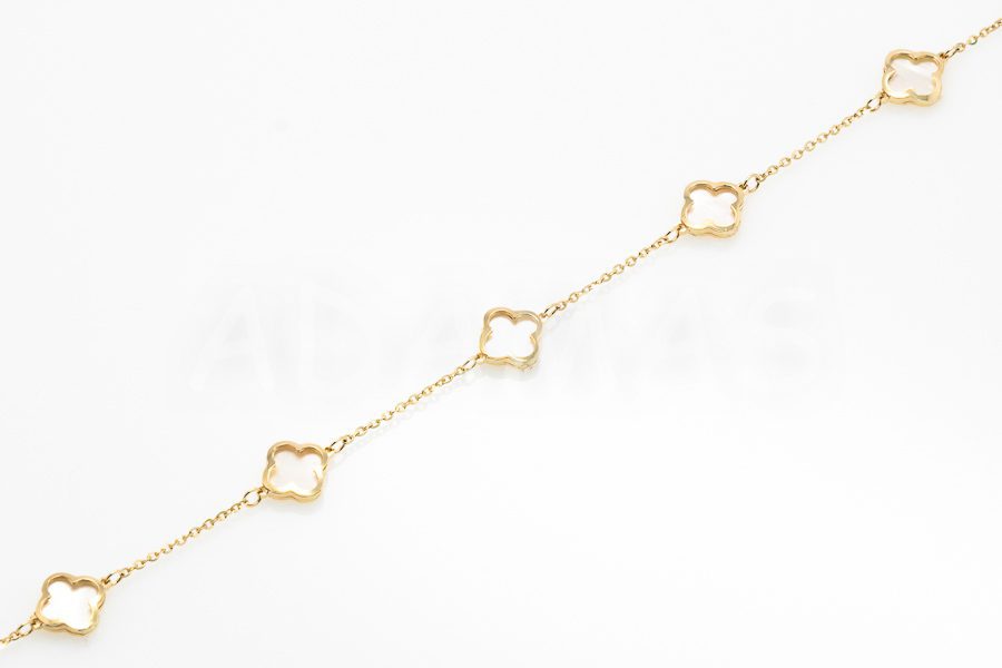 Dámsky náramok zlatý s príveskami- kvety s bielym perleťovým emailom