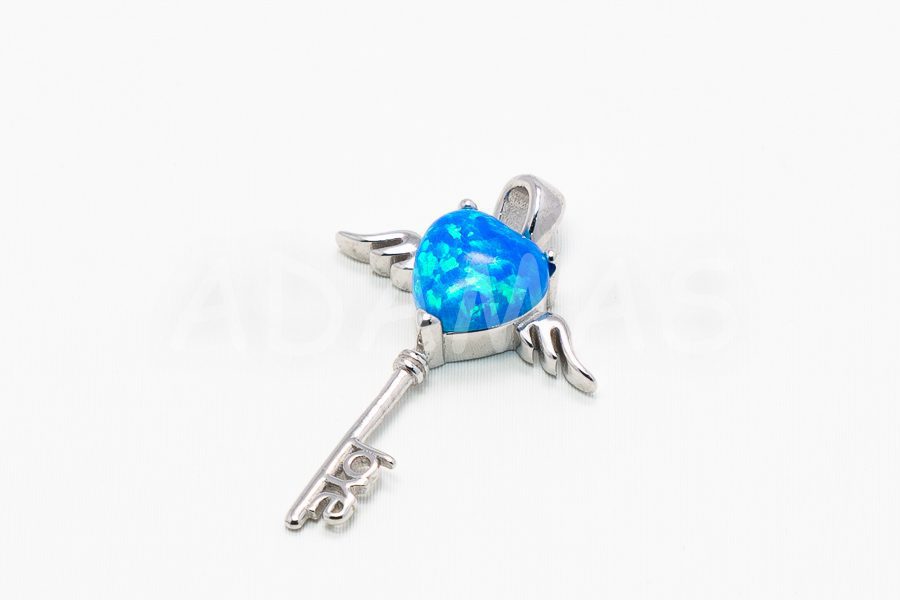 Dámsky prívesok strieborný s emailom- kľúč so srdcom a anjelským krídlom