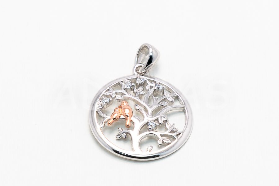 Dámsky prívesok strieborný so zirkónmi- – strom života s vtákmi
