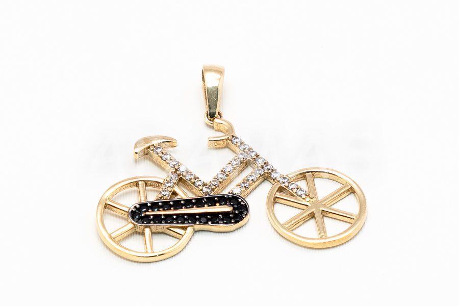 Dámsky prívesok zlatý- bicykel so zirkónmi