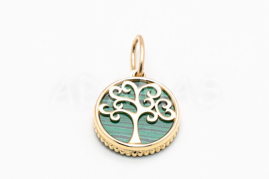 Dámsky prívesok zlatý so zeleným emailom- strom života