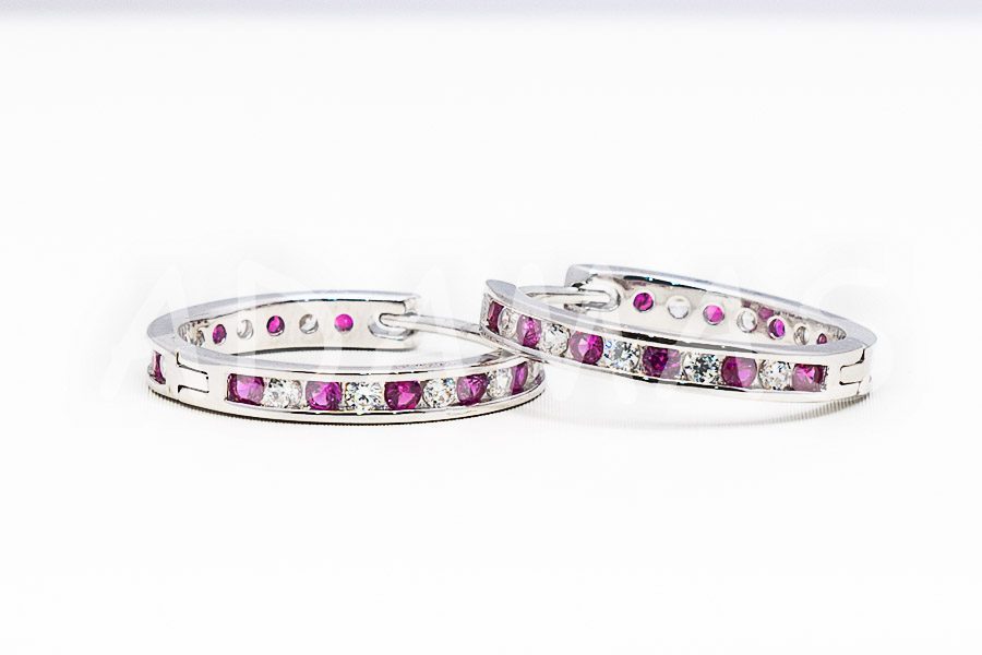 Kruhové náušnice strieborné so zirkónom.