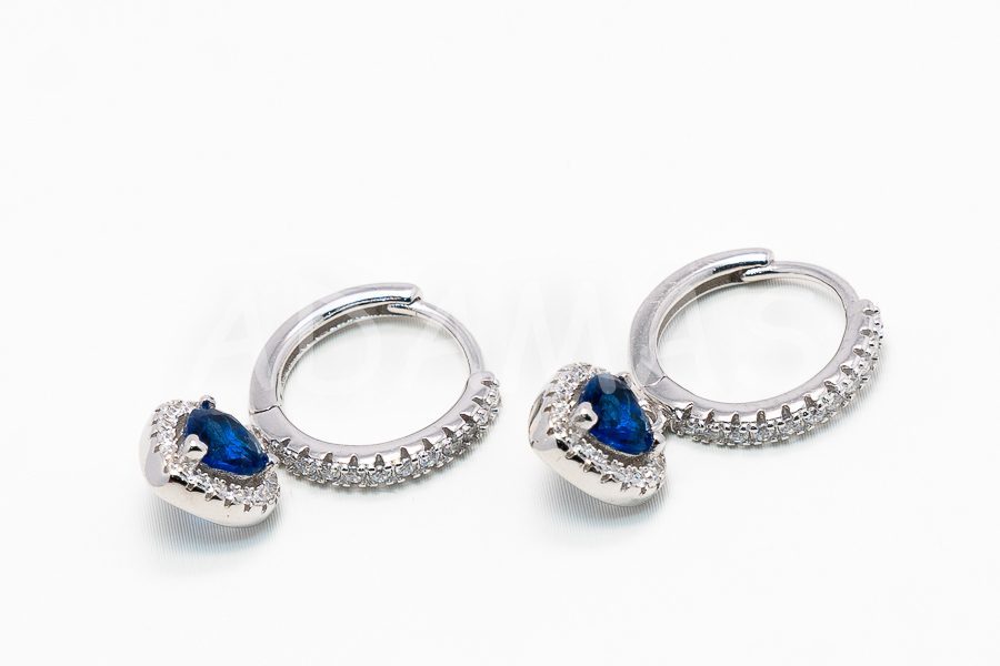 Kruhové náušnice strieborné so zirkónmi- visiace srdce