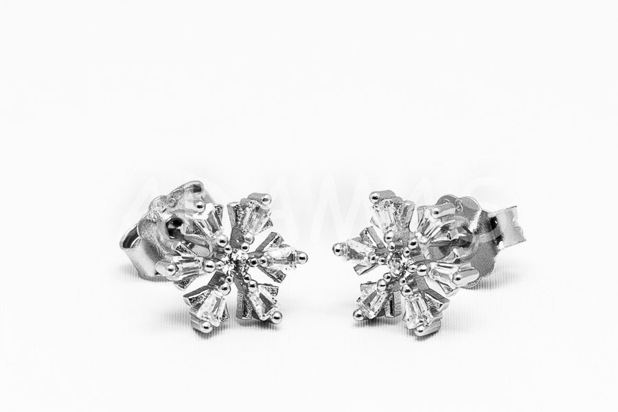 Napichovacie náušnice strieborné so zirkónmi- snehová vločka