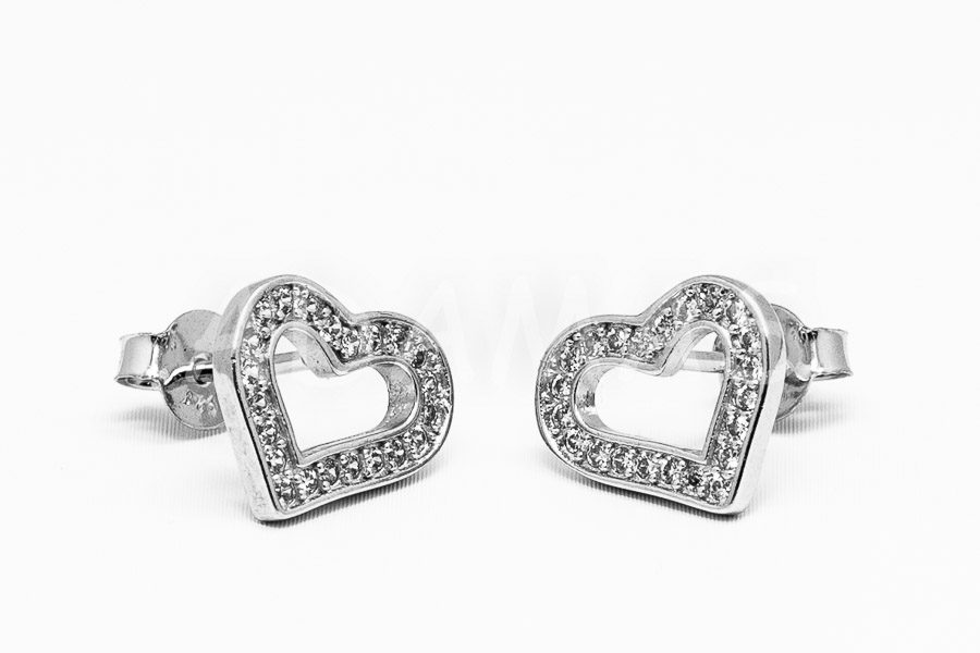 Napichovacie náušnice strieborné so zirkónmi- srdce