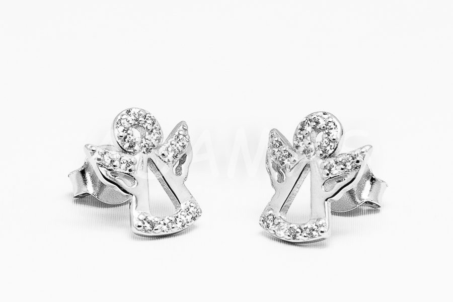 Napichovacie náušnice strieborné so zirkónmi- anjel