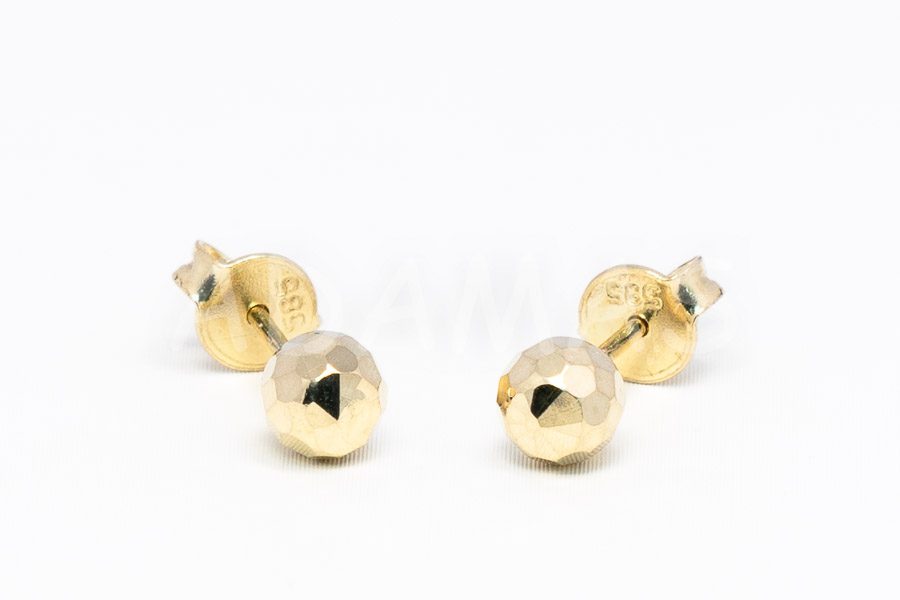 Napichovacie náušnice zlaté- guľka so vzorovaným povrchom