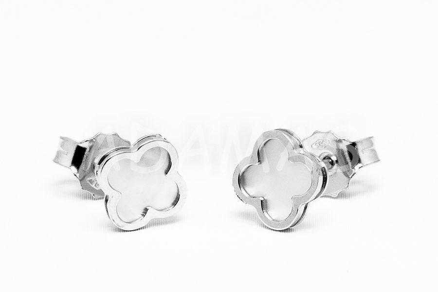 Napichovacie náušnice zlaté – kvet s bielym perleťovým emailom