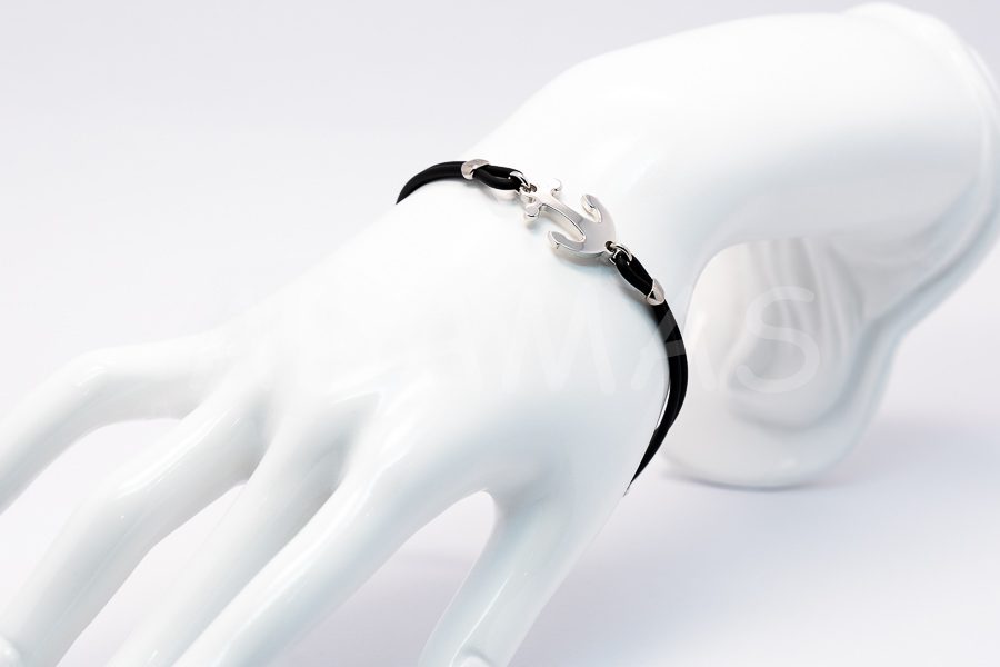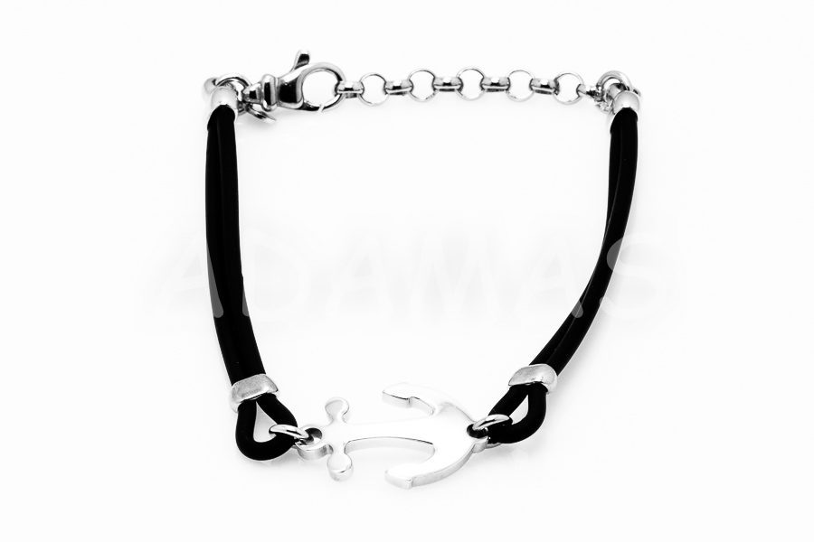 Pánsky náramok strieborný kombinovaný s kaučukom