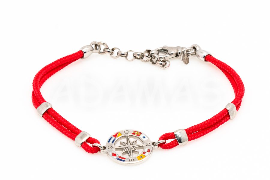 Pánsky náramok strieborný s emailom a kombinovaný so šnúrou