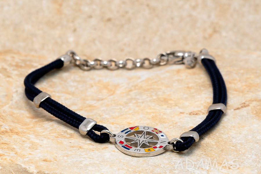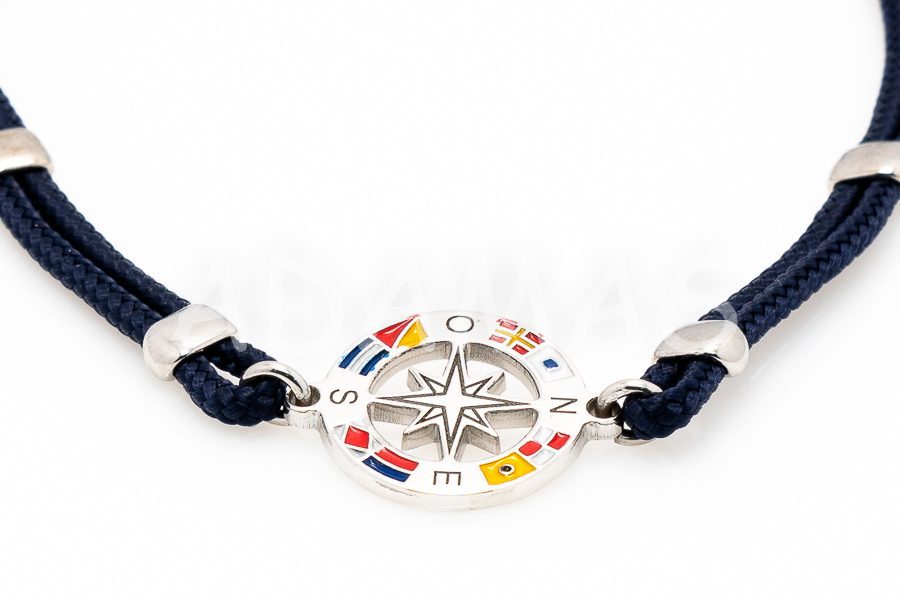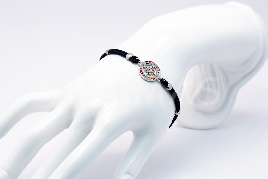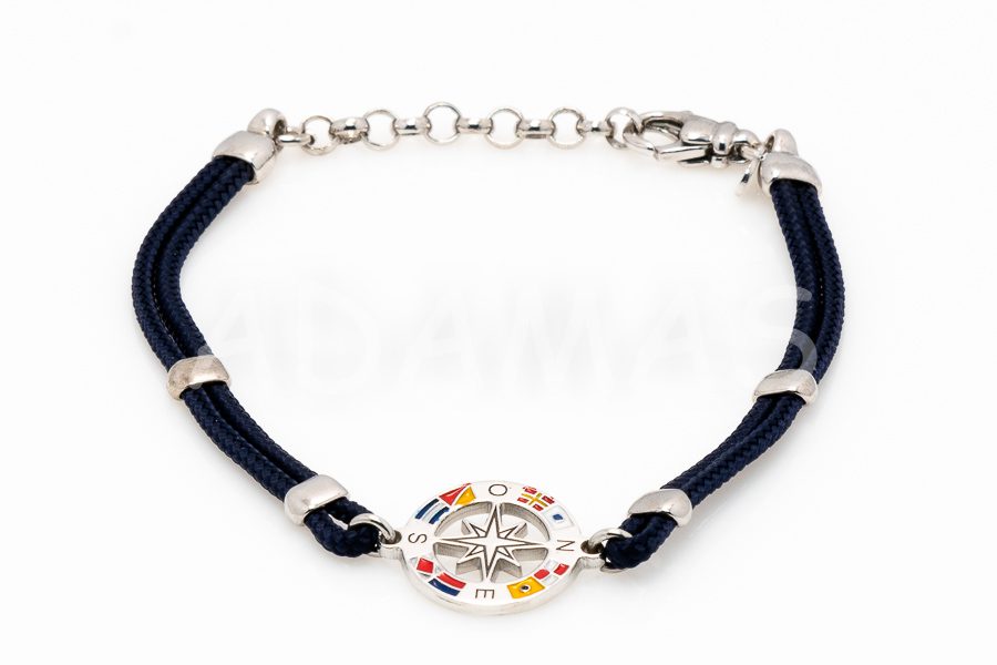 Pánsky náramok strieborný s emailom a kombinovaný so šnúrou