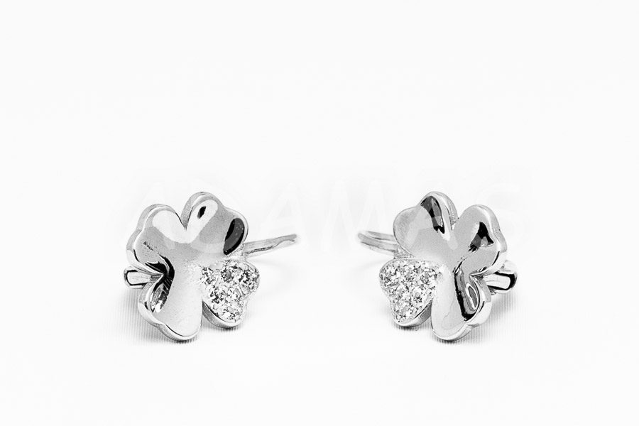 Patentové náušnice strieborné so zirkónmi- štvorlýstok