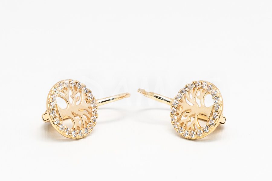 Patentové náušnice zlaté so zirkónmi- strom života