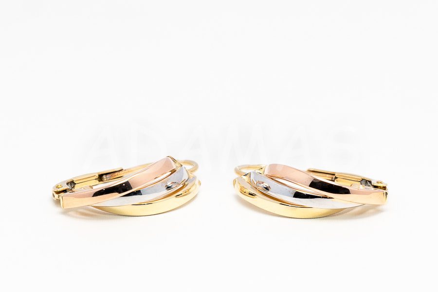 Patentové náušnice zlaté trojfarebné s lesklým povrchom