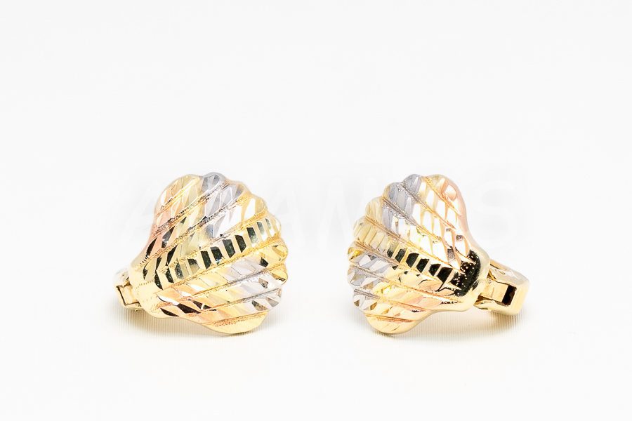 Patentové náušnice zlaté trojfarebné so vzorkovaným povrchom-zapínanie na klips