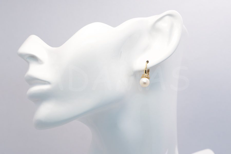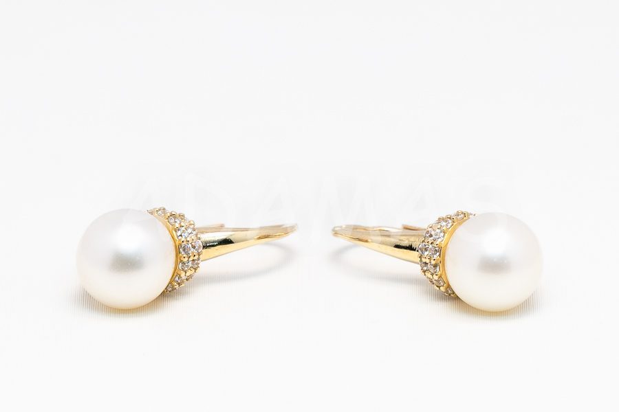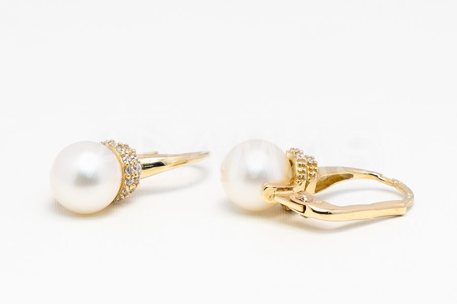 Patentové náušnice zlaté s riečnou perlou a zirkónmi