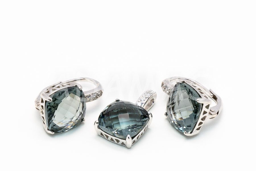 Obsah: patentové náušnice, prívesok s modrým a bielym zirkónom