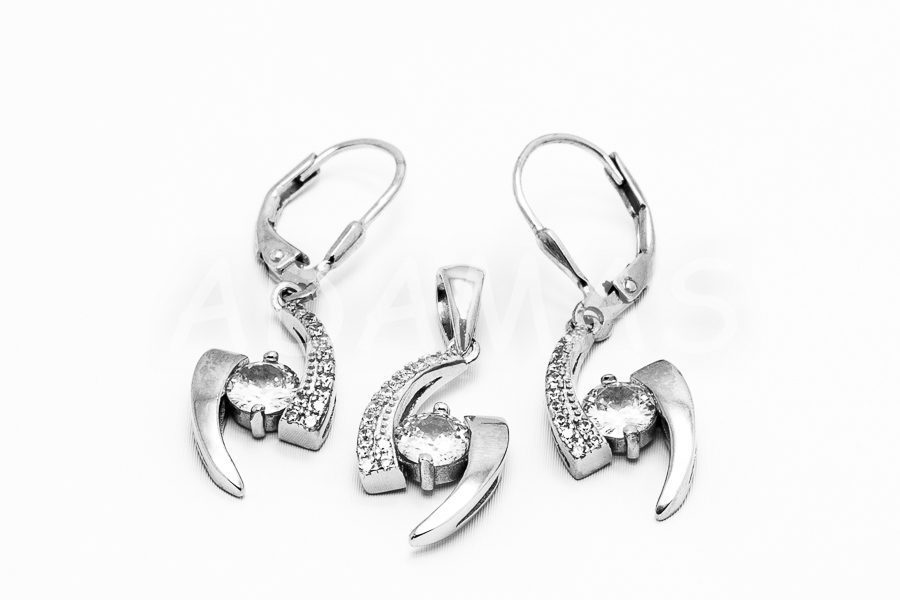 Strieborná súprava so zirkónmi.