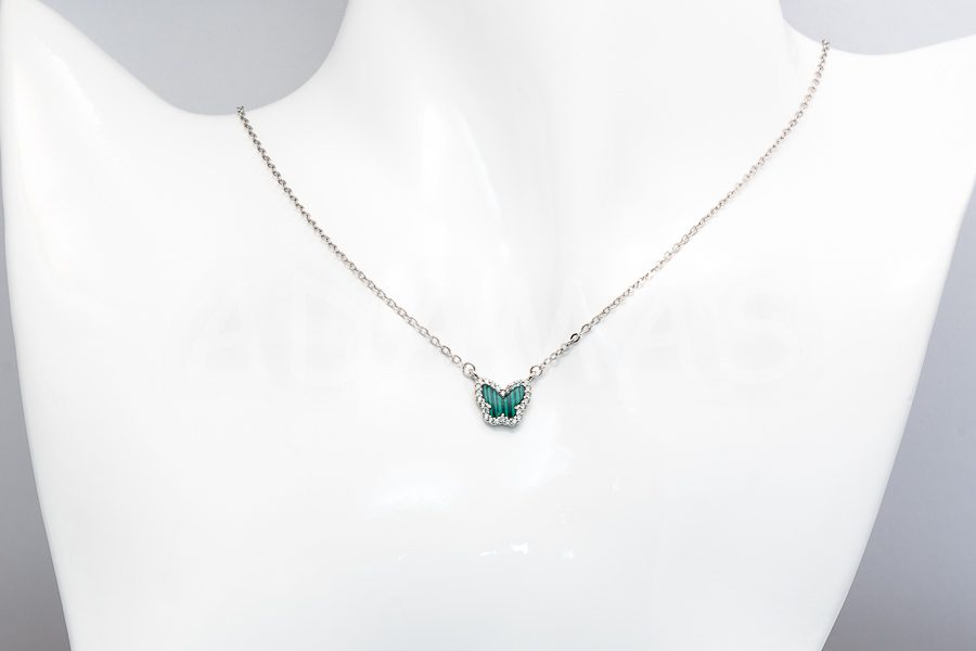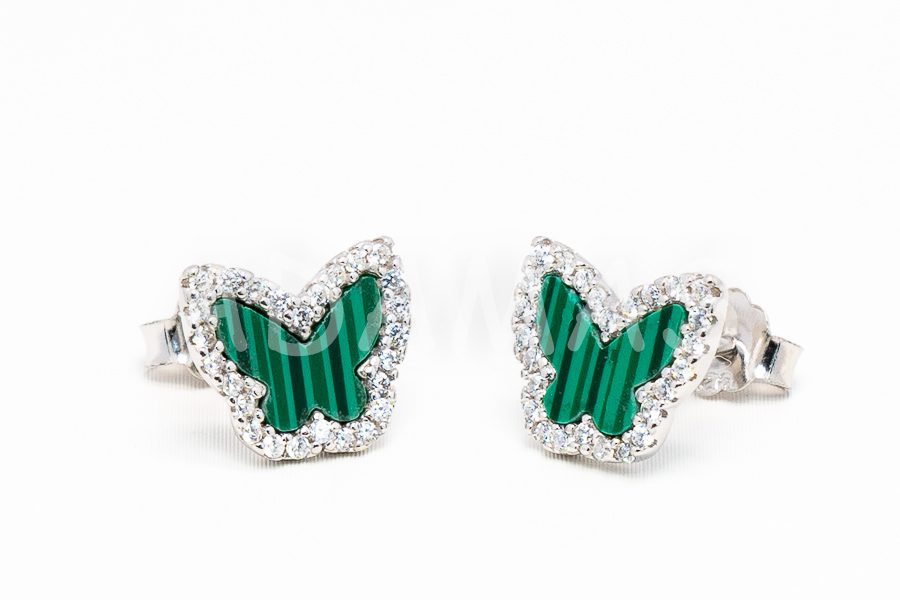 Strieborná súprava so zeleným emailom a zirkónmi- motýľ