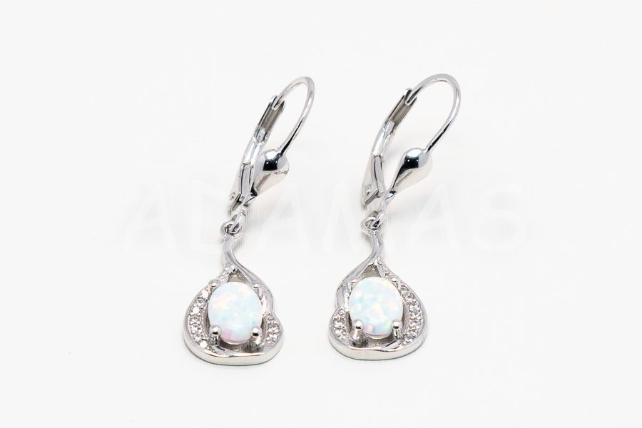 Visiace náušnice strieborné so zirkónmi a umelým opálom