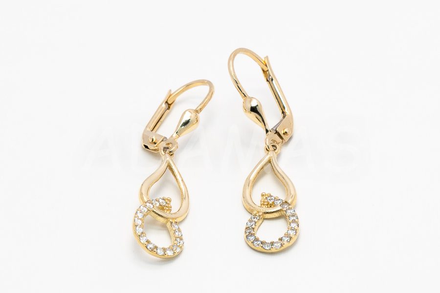 Visiace náušnice zlaté s bielymi zirkónmi.