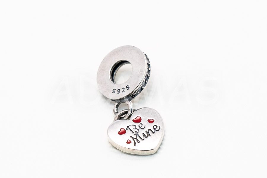 Charm prívesok štýlu Pandora – srdce so zikónmy s textom: Be mine