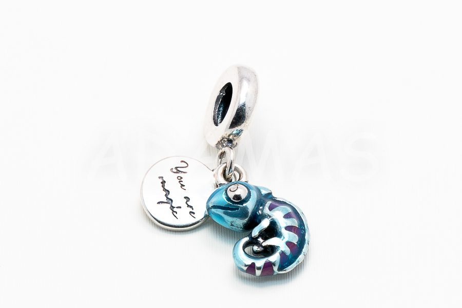 Charm prívesok štýlu Pandora – gekón s modrým emailom s textom: You are magic